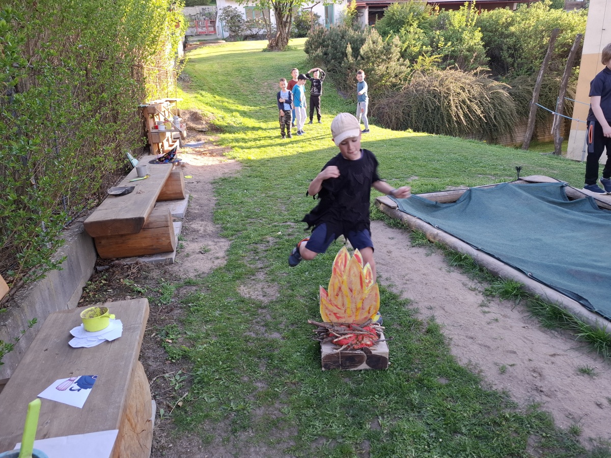 Plnili jsme úkoly z celoroční hry, společně četli pohádky z knížky Malá čarodějnice. Také jsme sportovali na školním hřišti, chodili na vycházky.