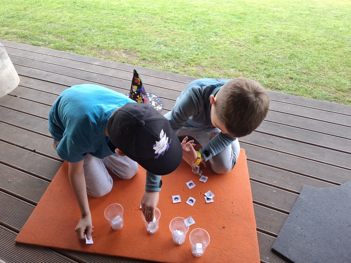 A jak vypadalo naše čarodějnické spaní. Soutěžili jsme v přeskakování ohně, třídění pavouků, ve slalomu na koštěti, hledání „čarodějnické havěti“ na zahradě, v běhu v sedmimílových botách. Za splnění jednotlivých soutěží jsme získali díl čarodějnice, kterou jsme nakonec museli složit. Potom jsme si společně opekli párky a nachystali si spaní. Nechyběla stezka odvahy. Šipky nás zavedly do komnaty čarodějnice, u které jsme se museli podepsat. Provázely nás strašidelné zvuky, ale všichni jsme to zvládli. Pak už pohádka na dobrou noc a sladké sny. Ráno snídaně ve školní jídelně a pak hurá do školy. Podle ohlasů dětí se jim akce líbila a paní vychovatelky je chválily za pěkné chování.