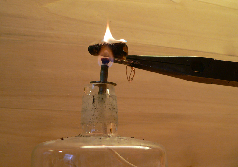 Pevně omotej malý vzorek plastu PVC (=polyvinylchlorid) měděným drátkem a uchop za konec drátku do kleští. Vlož plast do nesvítivé části plamene a pozoruj jeho zbarvení.